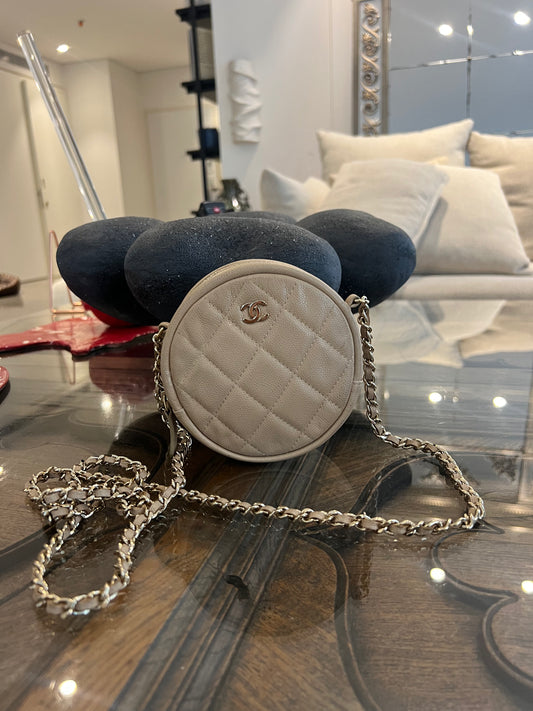 Pre-Loved Chanel™ 2018 Black Caviar Leather Mini Round Chain Bag